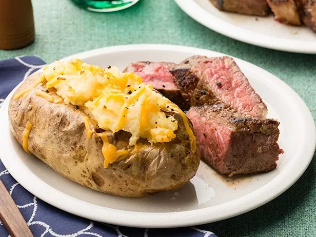Set the potatoes on a baking sheet, and bake until heated through, about 15 to 20 minutes. Sprinkle the tops with the remaining cheese and bake until melted, about 5 minutes. Serve immediately.
