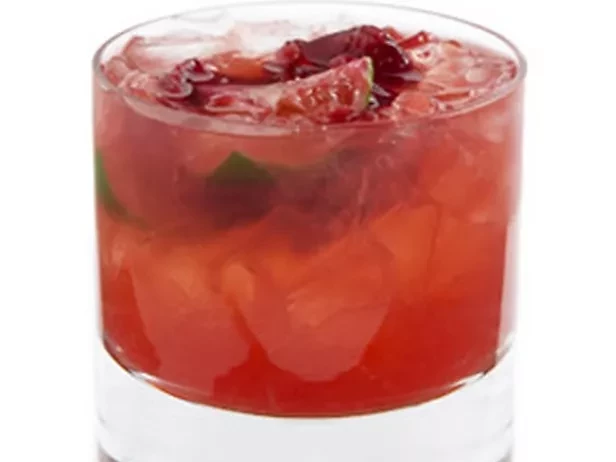 1) Put the cherries, lime, and sugar into a large rocks glass. Muddle the fruit and sugar by pressing them with a pestle or a wooden spoon until juicy and fragrant. Add the gin and crushed ice. Cover with a cocktail shaker and shake vigorously, or stir, until combined and chilled, about 30 secs. (In general, by the time the shaker mists up the drink is ready.) Serve.