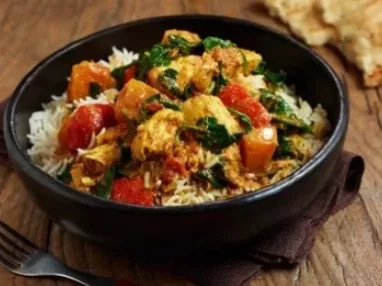 Meanwhile, cook the basmati rice to pack instructions and serve together with the curry and the naan.