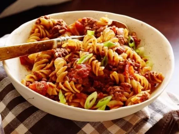 Drain pasta. Add hot pasta to chilli pot and stir to coat pasta evenly. Remove from heat and garnish big bowlfuls of chili mac with chopped spring recipes.