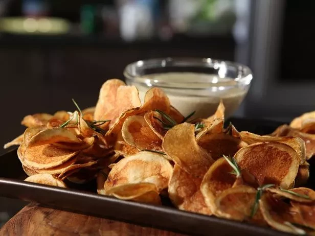 For the crisps, in a medium pot, pour enough oil so that the oil comes 3 inches up the sides. Heat over medium heat until a deep-frying thermometer inserted in the oil reaches 170°C. (If you don't have a thermometer, a cube of bread will brown in about 3 minutes.)