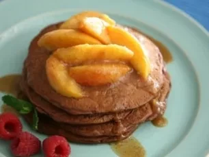 Chocolate Griddle Cakes with Cinnamon Peaches