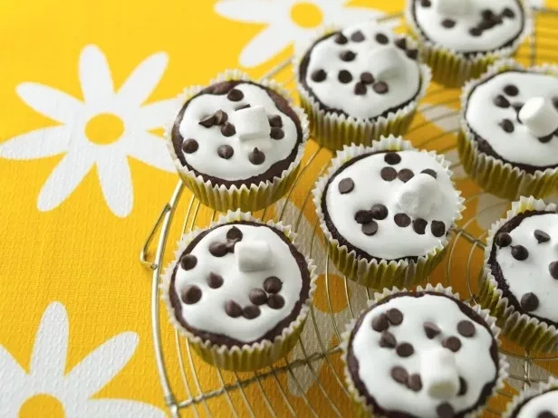 To make the glaze: Put the marshmallow creme in a small dish. Add soymilk and mix well. Once the cupcakes have cooled completely, drizzle marshmallow glaze over them. Top each cupcake with 1/4 teaspoon chocolate chips and one mini marshmallow. Refrigerate until ready to serve. Garnish the cupcakes with additional chocolate chips and marshmallows, if using.
