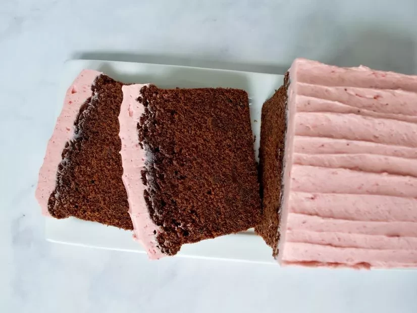 - To frost the cake, trim off the baked crust on the short ends of the cake and trim off a bit of the crown, if desired. Dollop the buttercream on top and spread to the edges, smoothing as desired. Store any leftovers covered on the counter for up to 3 days.
