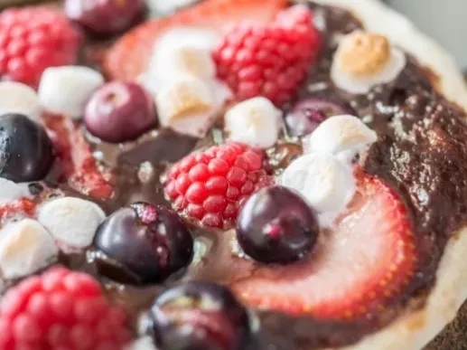 Spread each 'pizza base' with a tablespoon of Carnation® Chocolate Filling and Topping and then sprinkle with berries.