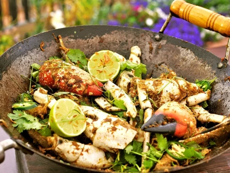 For this curry just use the legs and claws, as they are massive. Keeping the heads for a salad or risotto. Any crustaceans can be used instead of the king and snow crab. Mud crabs would be ideal. To make eating easier and to impart the flavour, crack all the legs and claws without breaking them apart.