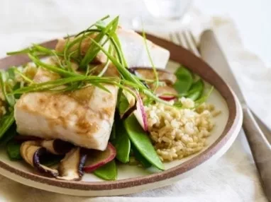 4) Coat a glass baking dish with cooking spray. Place the fish in the dish and bake for 20 mins. Without removing the dish from the oven, turn on the grill element in the oven and grill for 5 additional mins. When the fish is done, remove it from the oven. Slice a medallion of crab butter and place it on top of the grilled fish. Sprinkle fresh parsley on top for added colour.