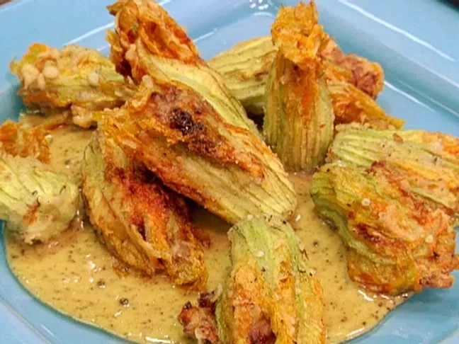 Crispy Squash Blossoms Filled with Pulled Pork and Ricotta
