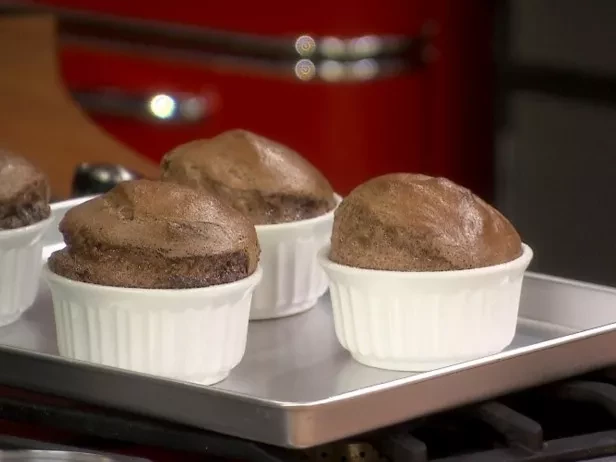 Dark Chocolate Souffle with Smoked Salt and a Sweet Mint and Almond Pesto