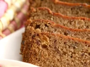 Add egg mixture and dates to flour mixture and stir just until blended. Stir in raisins. Scrape into prepared pan and bake for about 45 minutes, until a tester inserted in the center of the cake comes out clean.