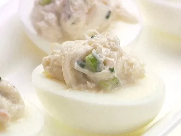 2) Transfer to a serving platter, spoon the crab mixture into the egg halves and serve.