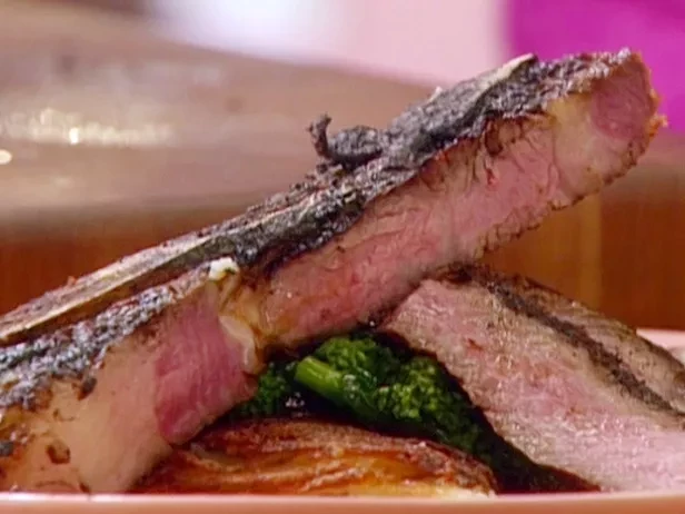 6) Remove the steaks from the grill and allow to rest in a warm spot for 7 to 8 minutes. Cut the steak off the bone and slice on the bias across the grain. Drizzle with extra-virgin olive oil and serve immediately.