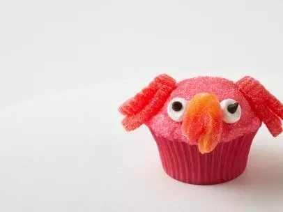 Attach the eyes by pressing gently into position. Insert one end of the trunk just below eye level. Push the bottom half of the ears into the sides of the cupcake. Insert a tail on the back of the cupcake. Repeat steps for all cupcakes.