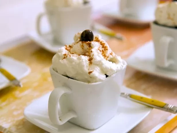 9. Cover the top of each cupcake with whipped cream and a light dusting of cocoa powder, and garnish with a whole chocolate-covered espresso bean.