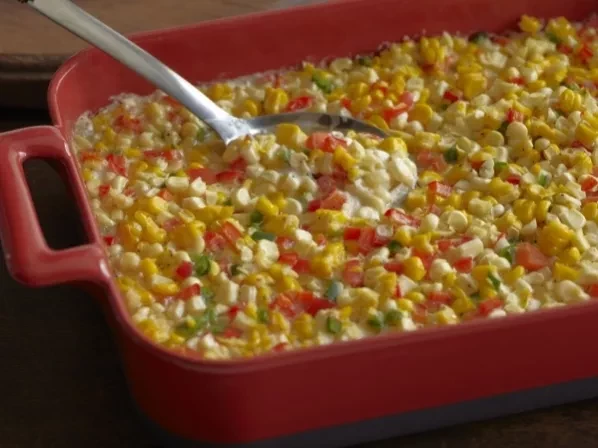 Fresh Corn Casserole with Red Bell Peppers and Jalapenos