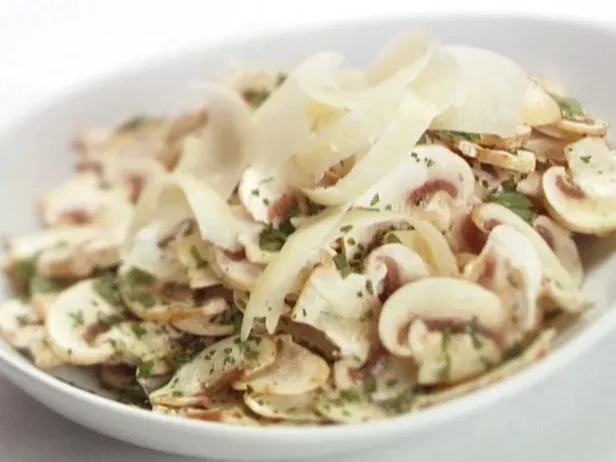 In a medium salad bowl, mix together the mushrooms and parsley.