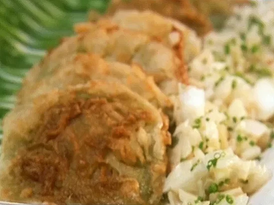 3) Dip the tomatoes into buttermilk, then dredge them into flour with a dash of pepper. Deep-fry until golden brown. Keep warm.