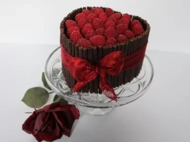 Fill the top of your cake with fresh raspberries and sprinkle these with a little edible red glitter to make them shine.