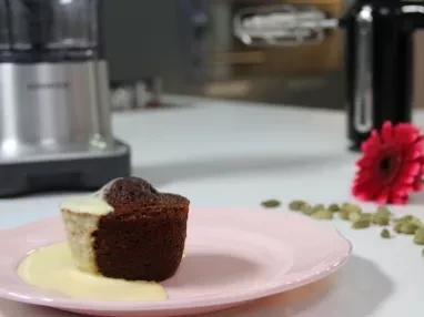 8. The puddings will rise, so level out the tops with a knife and then turn out and serve with the custard.