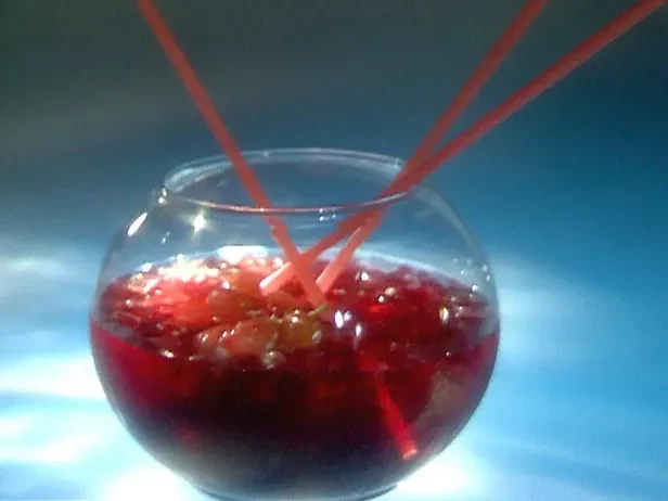 1) Put the ice in a large bowl or fish bowl, and pour the vodka, rum, gin, triple sec, grape juice and lemon-lime soda over the top.