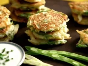 Drain and rinse to cool (or shock in ice water) (Alternately 2 cups of thawed frozen Frenched beans can be used). Set aside.