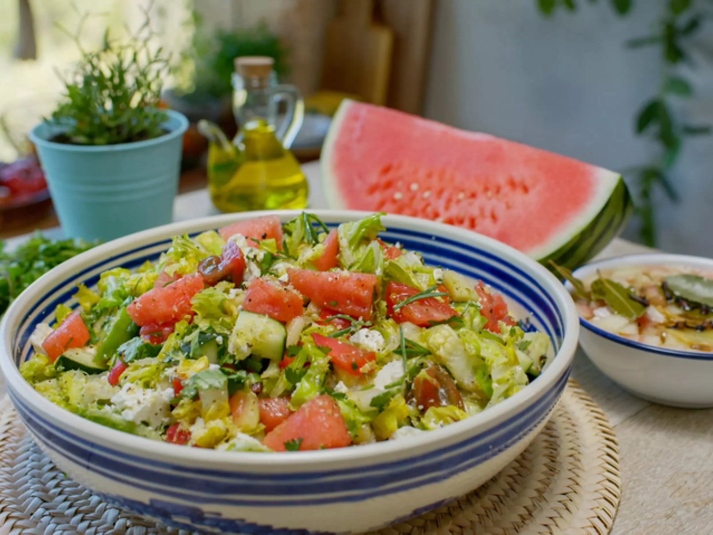 - When ready to serve, toss the greens with a little salt and pepper. Add the lemon juice and vinegar to the walnut mixture and spoon the nuts over the salad, adding as much of the dressing as needed to lightly coat the leaves. Add the blue cheese, and toss again.