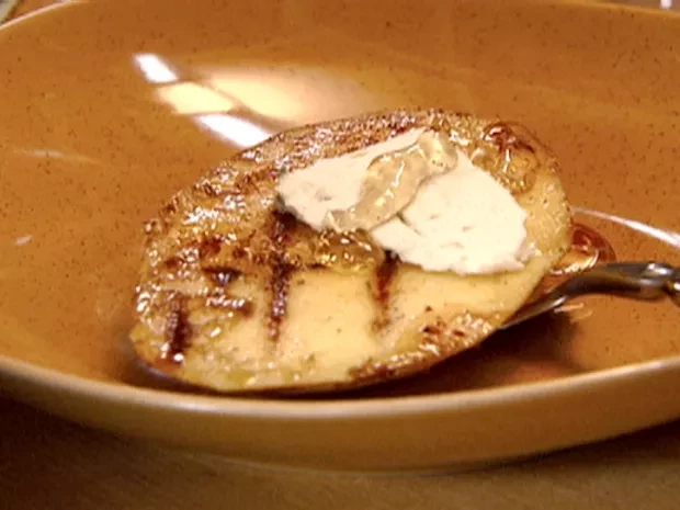Griddled mangoes with blue cheese and honey