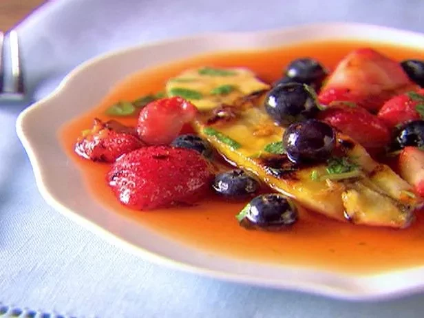 2) In a medium bowl, toss the fruit in the sugar to coat. Griddle over medium heat, until a golden crust begins to form on the fruit, about 3 to 4 minutes per side.
