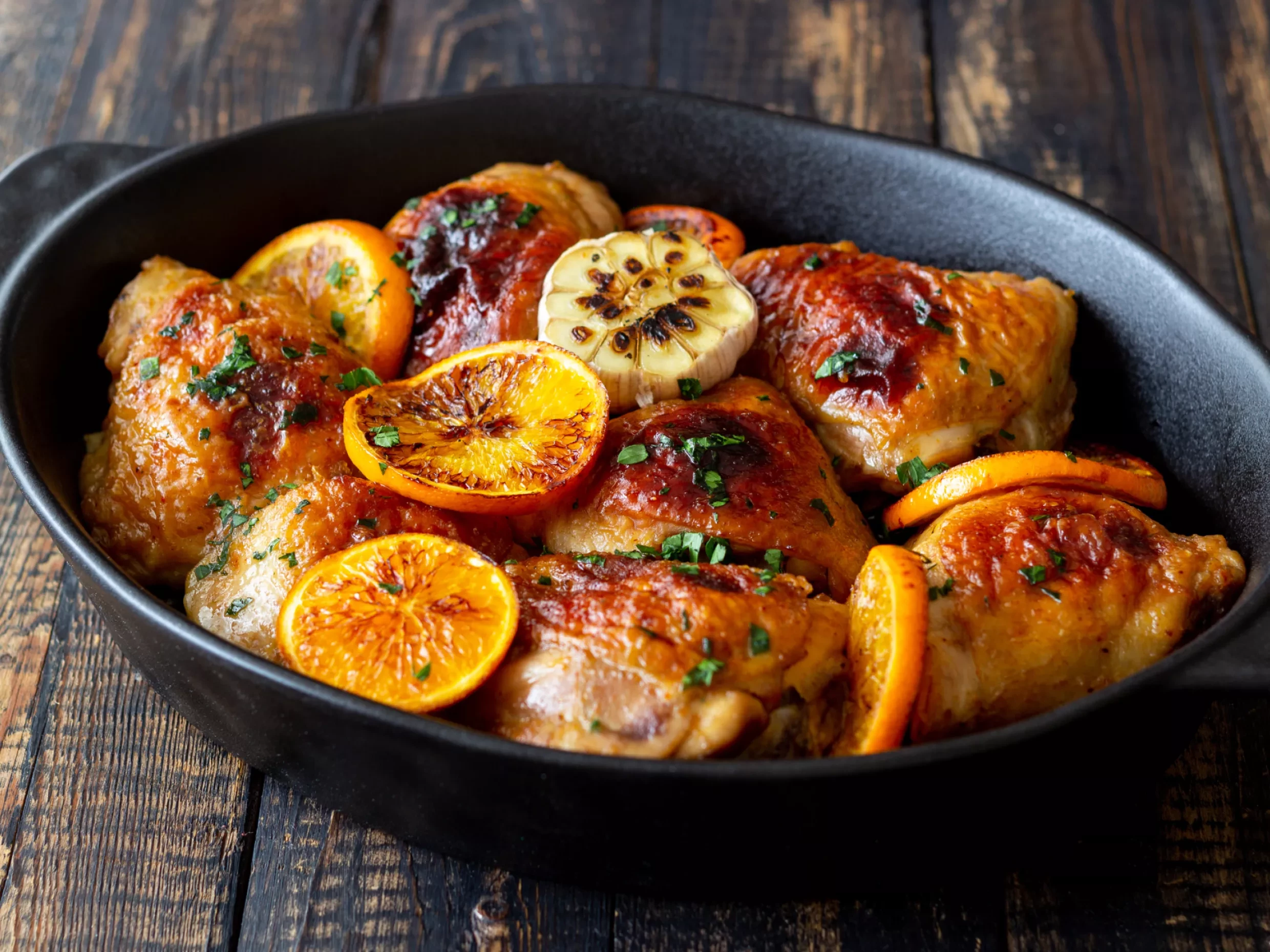 Mix the orange juice, olive oil, hot sauce, mustard, and orange zest together in a large bowl. Add the chicken and toss to combine. Cover with plastic wrap and let marinate for at least 1 hour and up to overnight in the refrigerator.