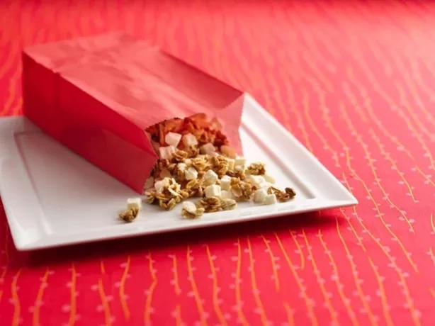 Spray a baking pan with non-stick spray and spread the cereal mixture out on the pan.