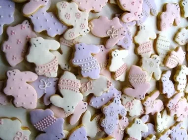 When your biscuits are cool and your fondant and royal icing are ready, you can begin to ice your biscuits.