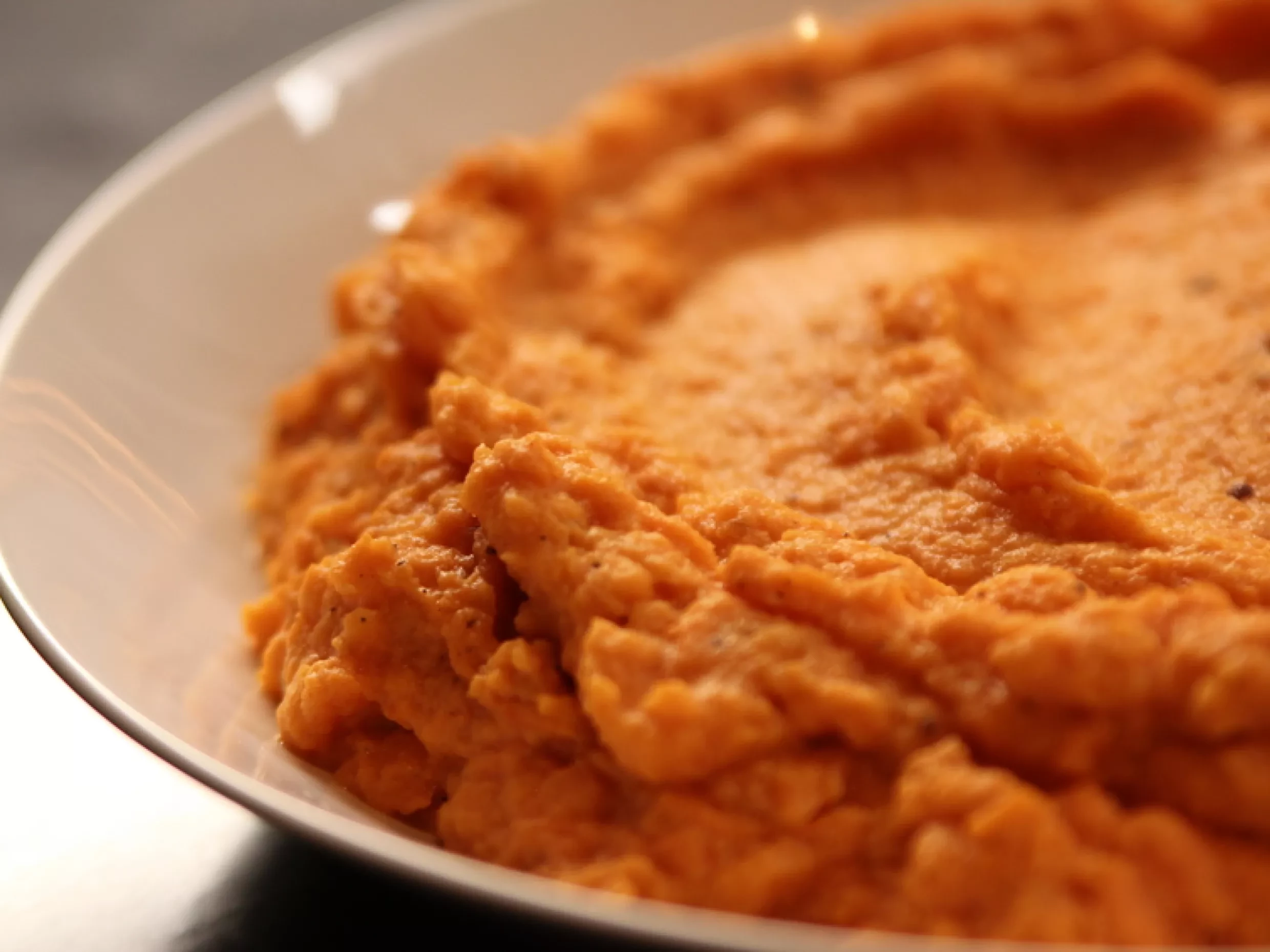 - Transfer the sweet potatoes to the bowl of an electric mixer fitted with the paddle attachment. With the mixer on low, slowly add the half-and-half, orange zest, orange juice, cayenne pepper, 1 tablespoon salt, and 1 teaspoon black pepper. With the mixer still on low, add the butter, 1 tablespoon at a time, until incorporated. Taste for seasonings and mix until smooth. Serve hot.