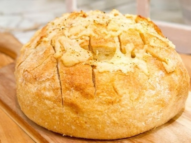 5. Pour the egg mixture into the bread shell and top with the Parmesan and the remaining provolone. Broil until the cheese is melted and bubbly and the eggs are just cooked through, about 3 minutes. (You can use a cake tester to check--insert it into the eggs to see if it comes out with raw egg on it.)