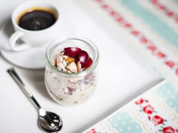The ultimate Swiss breakfast features muesli with milk or yoghurt, served alongside fresh fruit, tea or coffee.