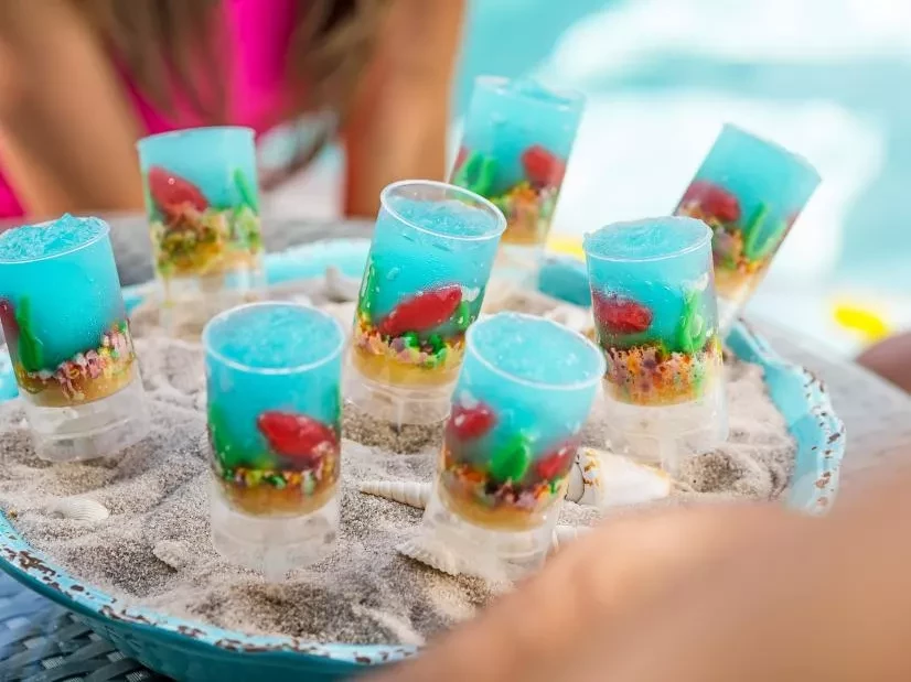 Make a splash at your next summer cookout with these pushable jelly treats filled with gummy fish, licorice seaweed and crunchy candy gravel.