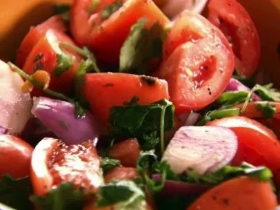 Cut up the tomatoes into quarters and add to a bowl. Cut the onion into large chunks and add to the bowl. Add the jalapeno to the bowl. Add the cilantro leaves to the bowl. Juice the limes and pour over. Sprinkle over the salt. Stir.