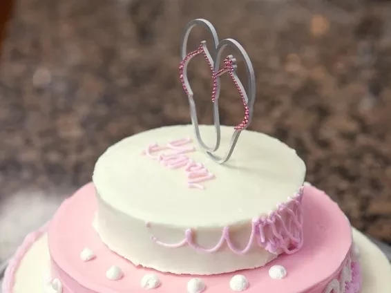 5. Cool the cakes in the pans for 10 minutes, and then run a thin knife or spatula between the cake and the pan to loosen the edges. Invert the cakes onto wire racks. Place on cake boards to frost with Buttercream Frosting. Slide the layers off the cake boards to stack and decorate with White Cream Decorator Frosting.