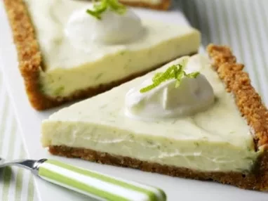 Remove the pie from the tin and place on a serving plate. Cut into slices and serve with the crème fraîche and lime zest.