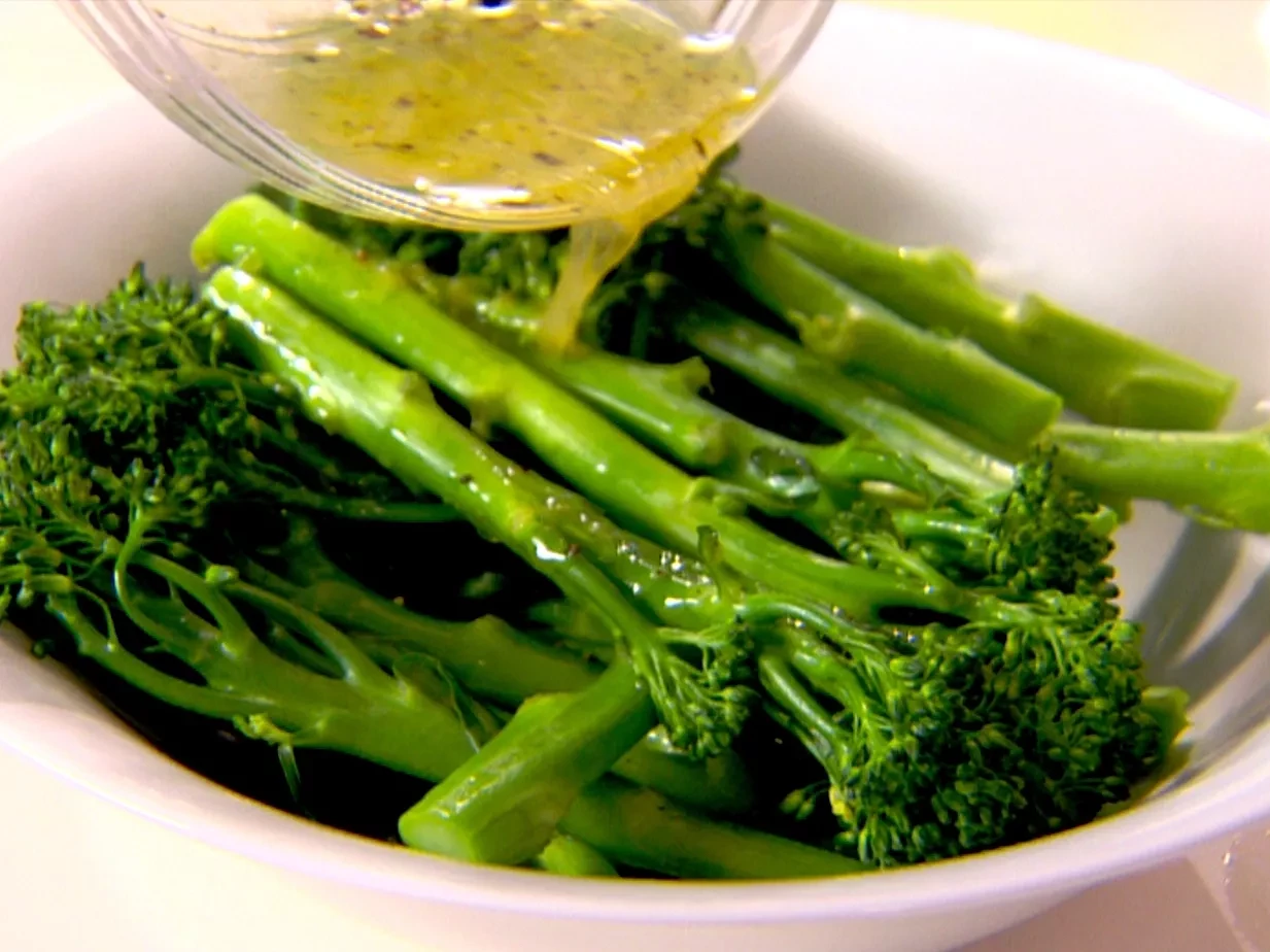 Drizzle gently-cooked baby broccoli with lemon dressing for a crunchy salad.