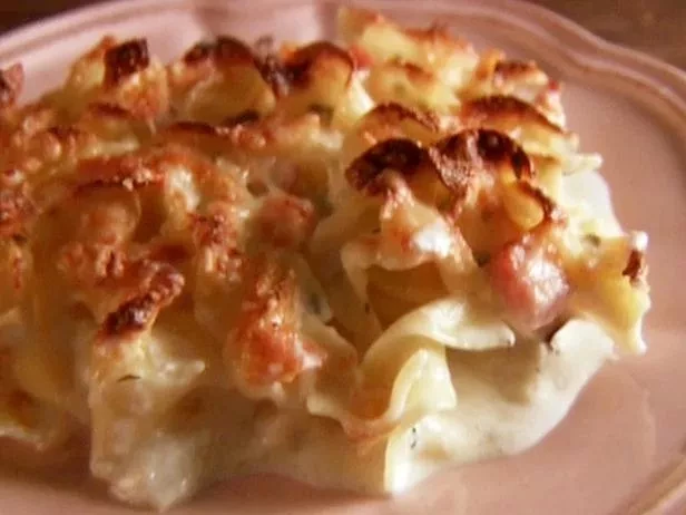 Pour the cheese sauce over the noodles and add to a 3.6L casserole dish.
