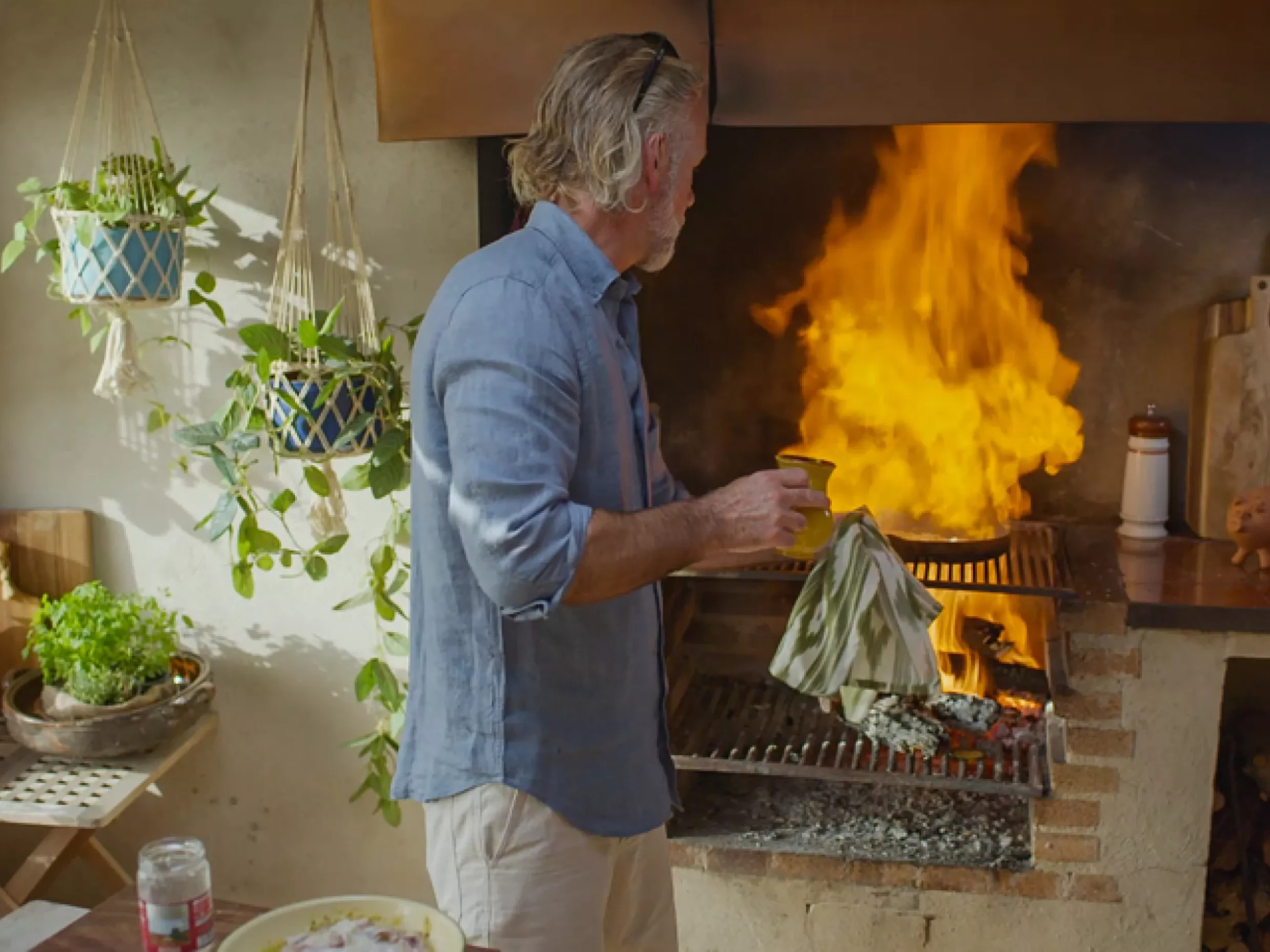 - Add the white beans to the grill pan with a drizzle of oil and pastis and heat through. When hot, place the beans in the bowl with the courgettes and sprinkle over the spring onions or shallots.