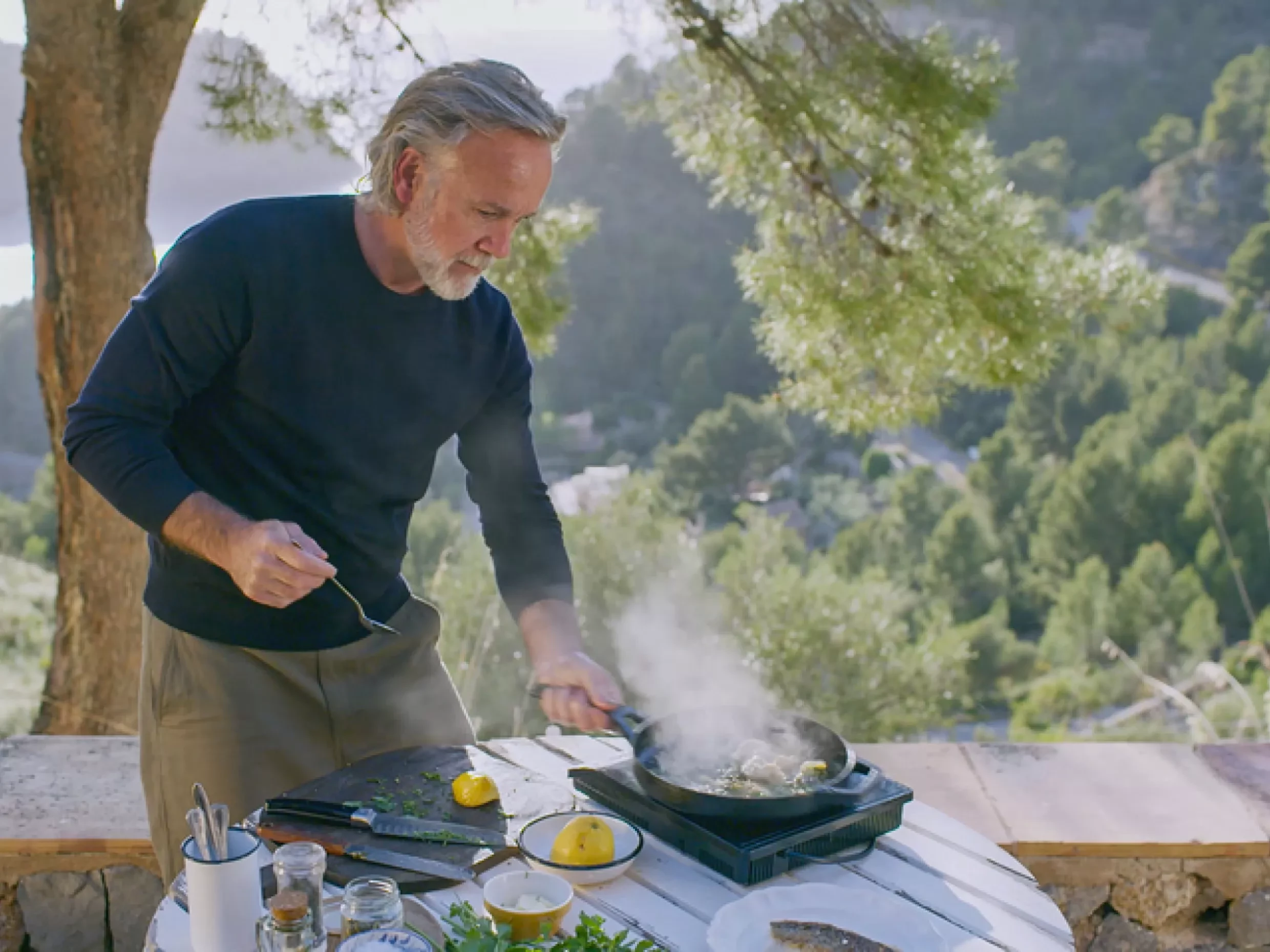 - Heat the oil in a large non-stick frying pan over high heat. Season the hake fillet with sea salt and pepper on the skin side and carefully place in the pan, skin side down.
