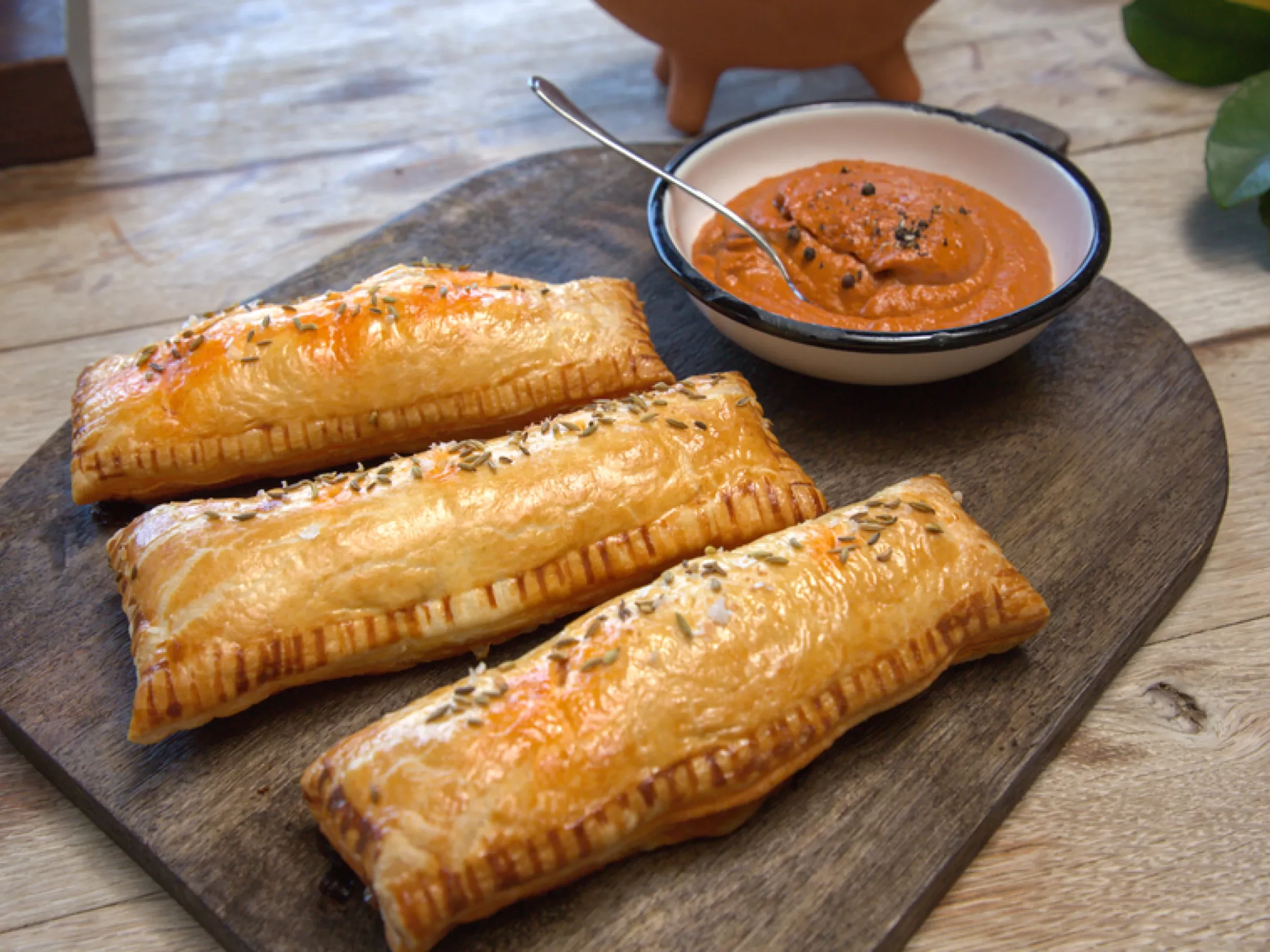 Marcus Wareing's golden-flaked Sausage Rolls made with Sobresada are paired with a delicious sun-dried tomato ketchup for an elegant snack-on-the-go.