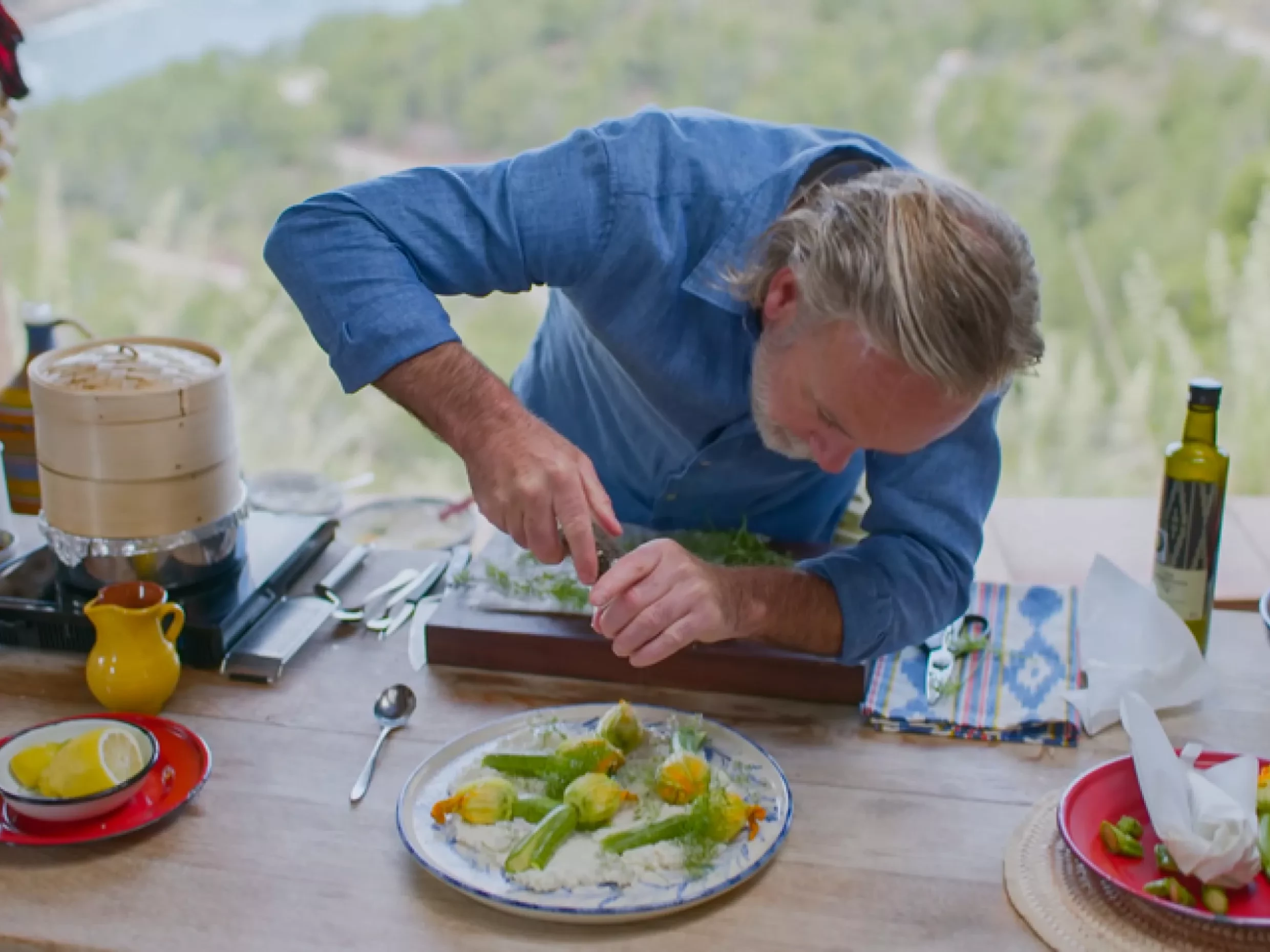 - Line two baskets of a bamboo steamer and place the stuffed flowers in. Steam the stuffed flowers over a low heat for 8-10 minutes on a gentle simmer, swapping the baskets over halfway through to ensure an even cook.