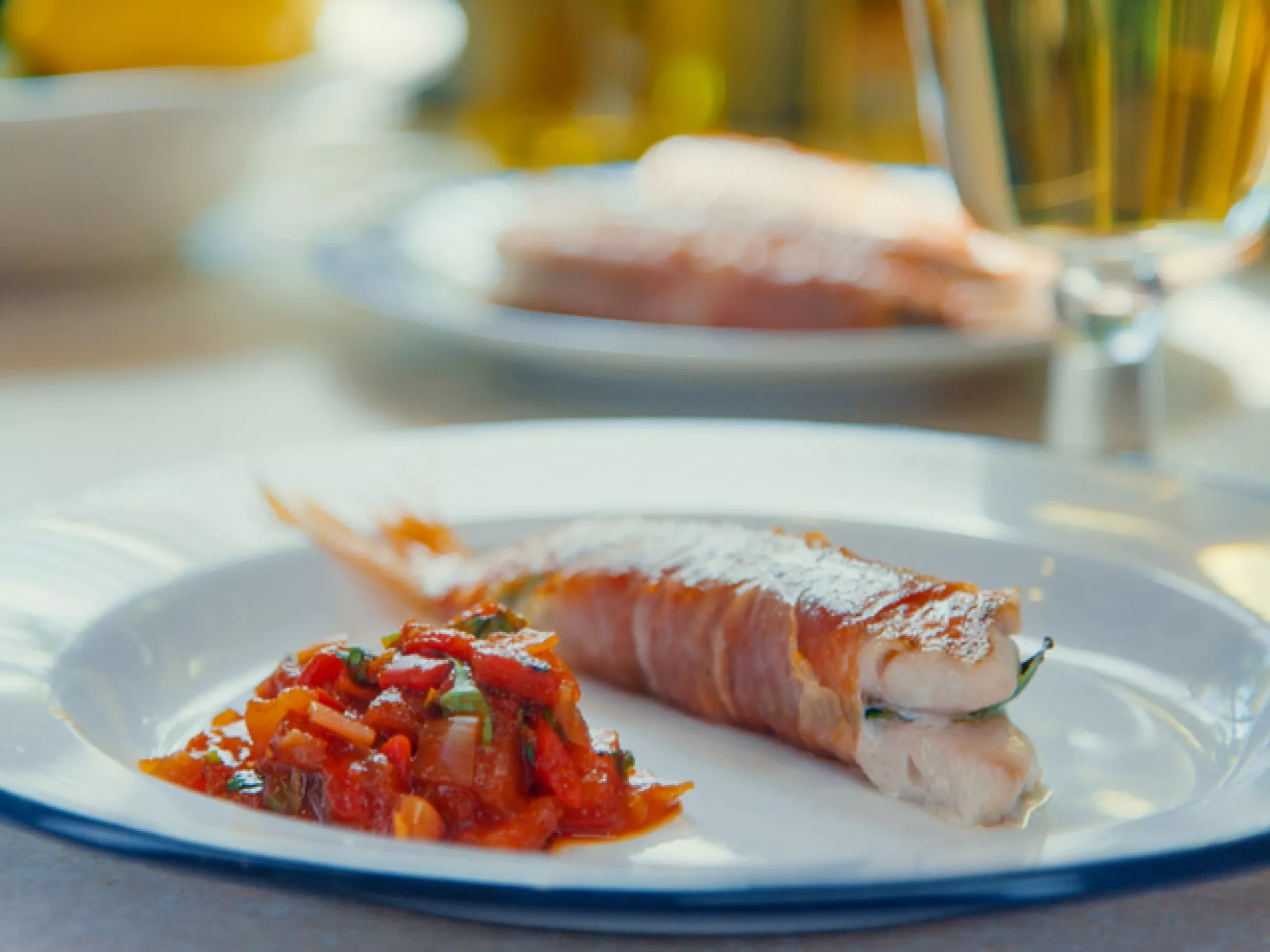 Michel Roux's Pan-Fried Red Mullet with Parma Ham, Piquillo Peppers, and Basil