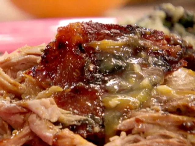 3) Whisk together the oil and remaining oregano in a large roasting pan, add the pork and turn to coat, cover and let marinate in the refrigerator for at least 4 hours and up to 24 hours.