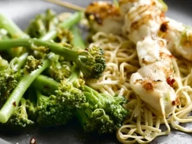 1. Make a bed of cauliflower and celery, and top with monkfish.