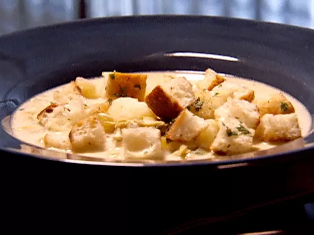 1) Heat the butter in a large pot over medium-high heat. Add the onion and celery and saute until softened, mixing often. Stir in the flour to distribute evenly. Add the stock, juice from two tins of chopped clams (reserve clams), cream, bay leaves and potatoes, and stir to combine. Bring to a simmer, stirring consistently (the mixture will thicken), then reduce the heat to medium-low. Cook for 20 minutes, stirring often, until the potatoes are nice and tender.