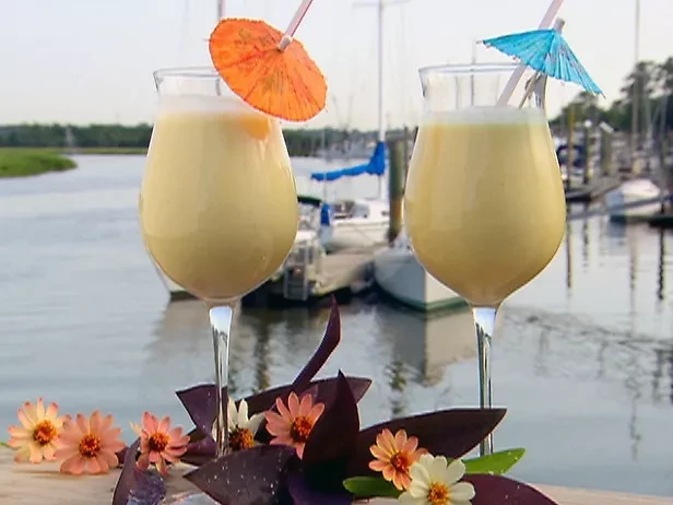 2) Add the litre of ginger ale and the ice cubes then stir. Pour the cream of coconut on top.