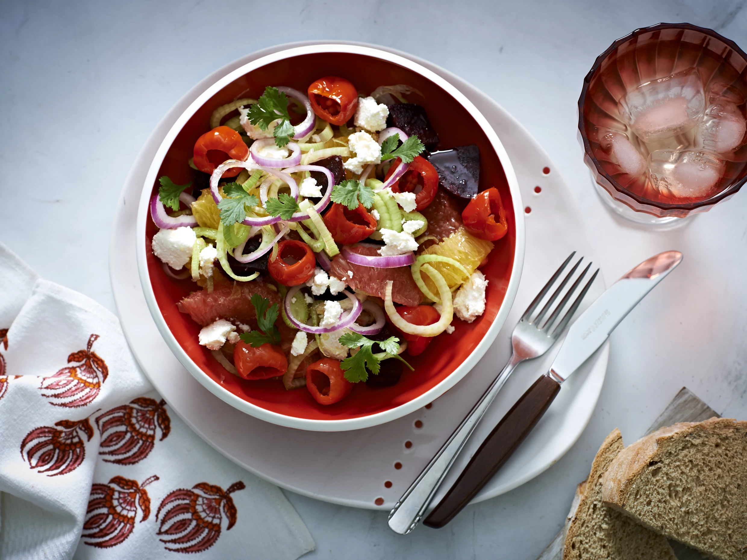 - Add the lemon juice, lime juice and olive oil, and mix through.